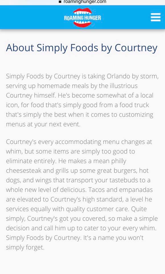 Today I felt appreciated and respected in one of the industries I love and that is food. I got a copy of a write up about Simply Foods by Courtney and it rejuvenated me and reminded me why I do cook and every time with Love. Thank you to all my loyal customers it means a lot. I look forward to getting better and better.