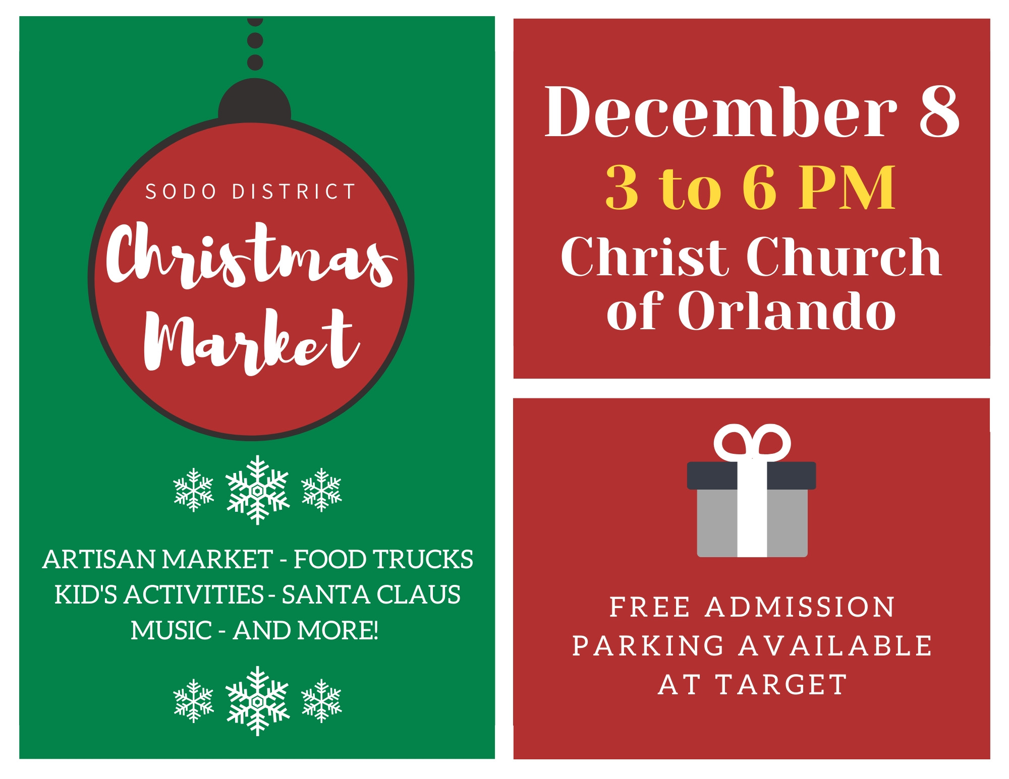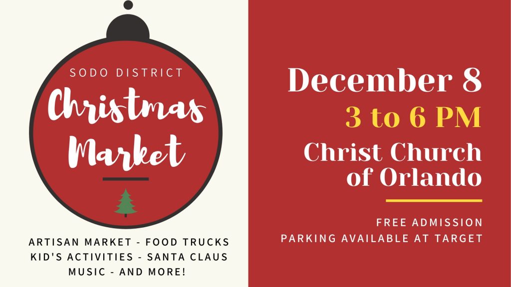 Let’s Join the Christ Church of Orlando in hosting a Artisan Market with food trucks – kids activities- Santa Claus- and Live Music – for all of the family all ages are welcome.